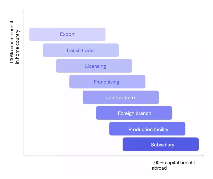 The type of internationalization chosen must be thoroughly analyzed in advance. Factors such as risk appetite, environmental factors, resources, expertise, know-how and, above all, capital and management performance should be taken into account.